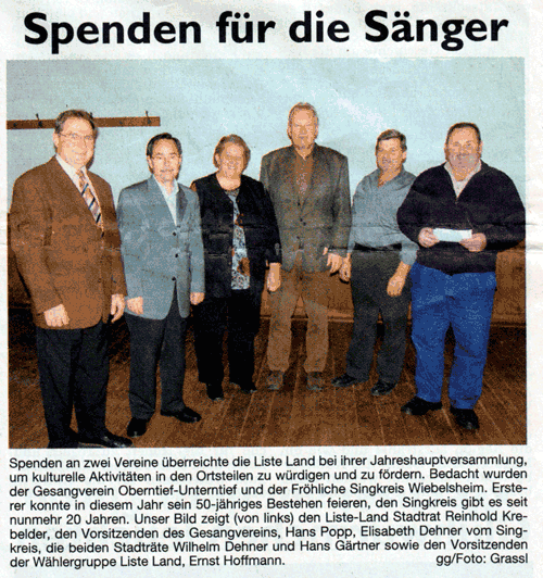 2007 Spenden für kulturelle Aktivitäten in den Ortsteilen (siehe Pressebericht rechts)