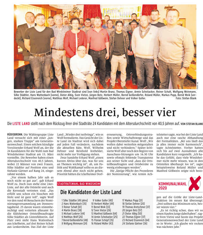 05. Dezember 2019, fand die Nominierungsversammlung im Gasthaus Eigner in Rüdisbronn statt (siehe rechte Bildleiste)