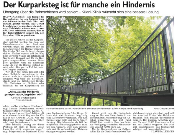 WZ 01. 8. 2014 "Der Kurparksteg ist für manche ein Hindernis","Das Schaulaufen in Blau startet heute"