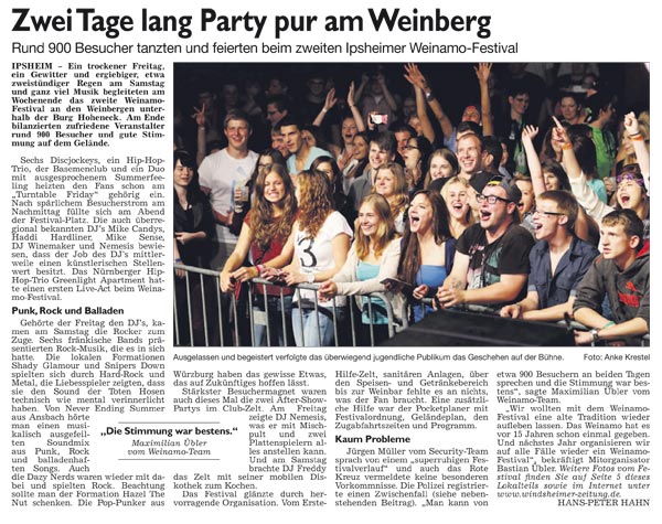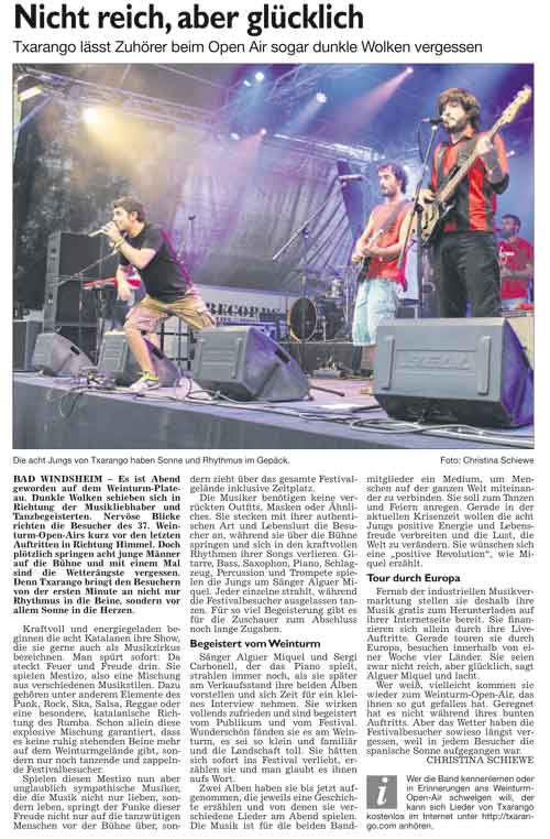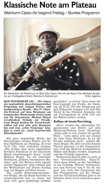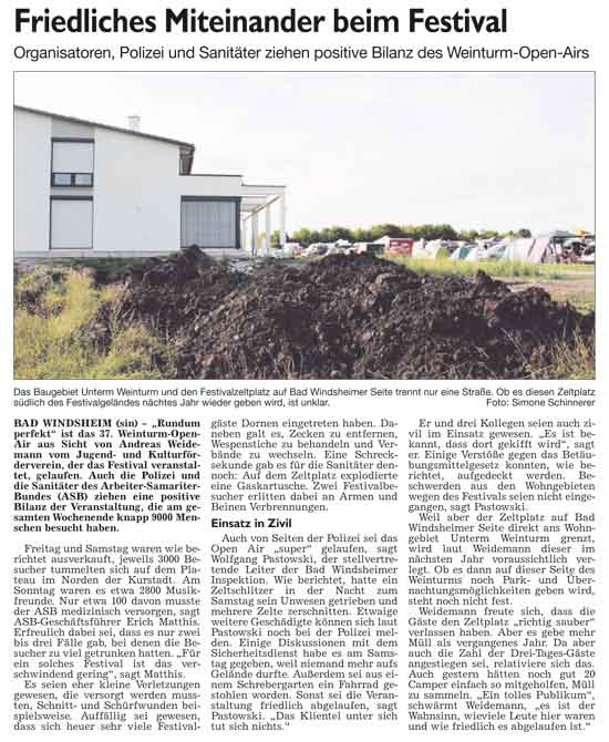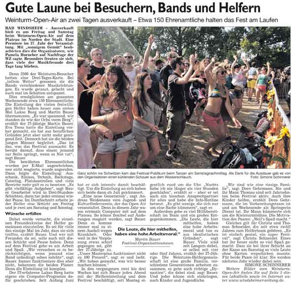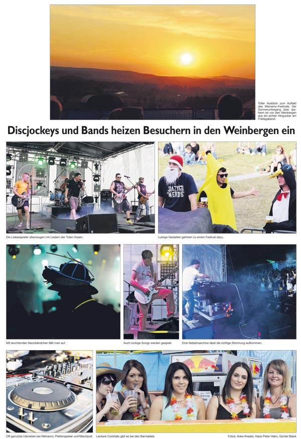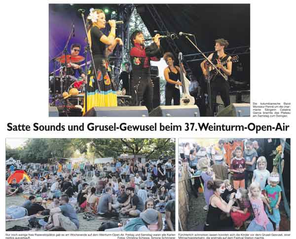 WZ 11. 8. 2014 "Gute Laune bei Besuchern, Bands und Helfern","Kaufland-Filiale wird modernisiert", "Satte Sounds und Grusel Gewusel beim 37.Weinturm-Open-Air 1", "Satte Sounds und Grusel Gewusel beim 37.Weinturm-Open-Air 2"