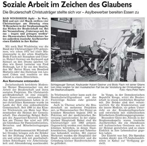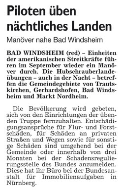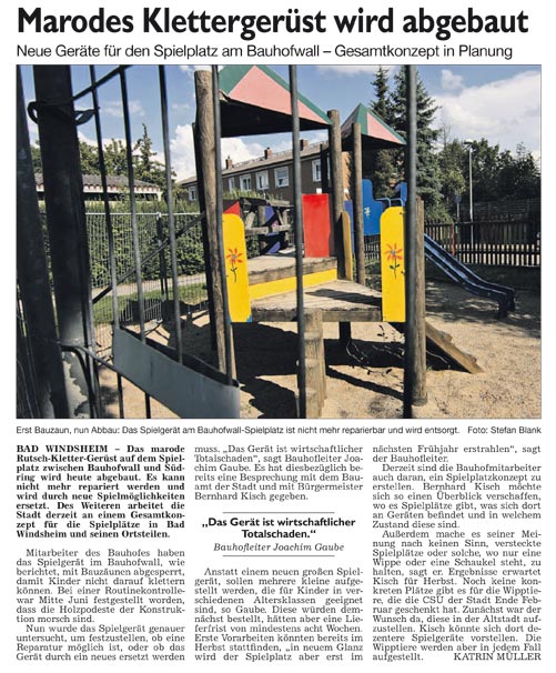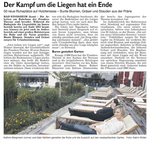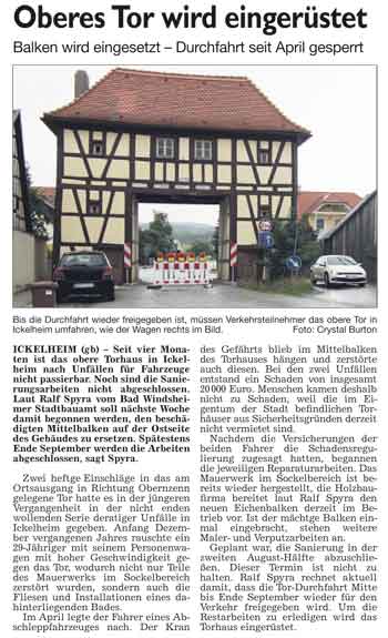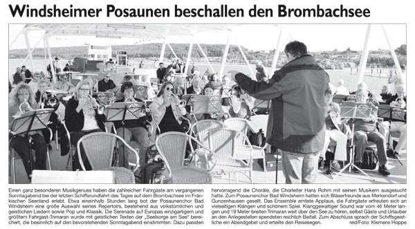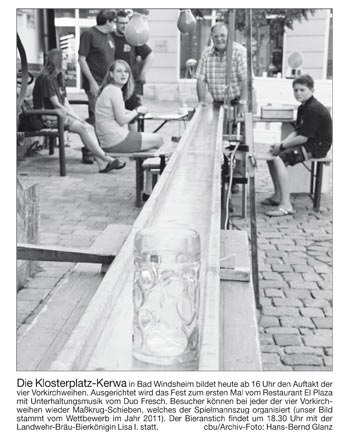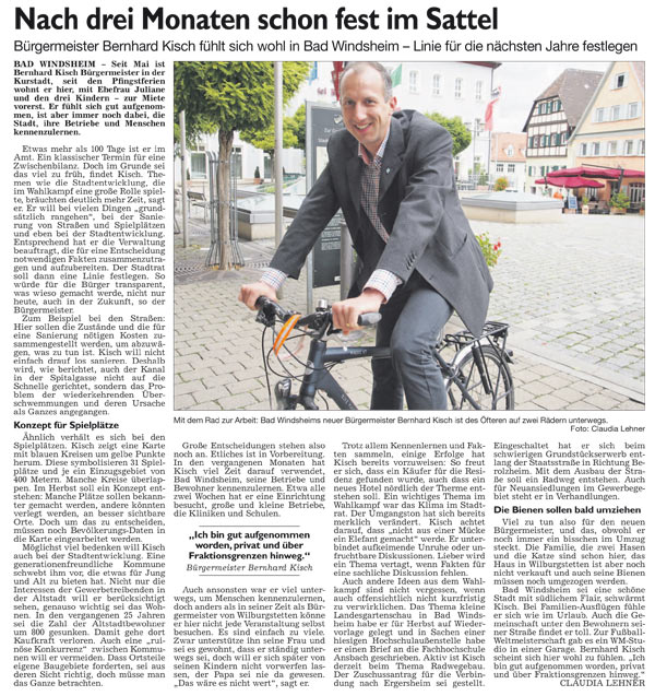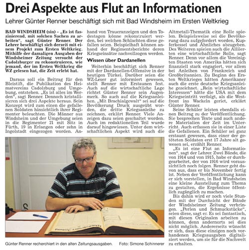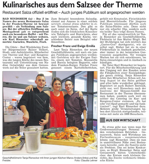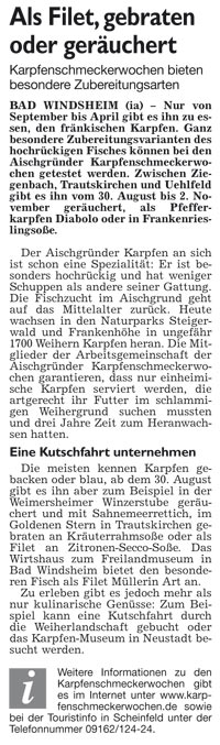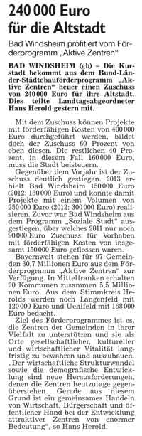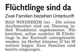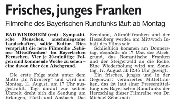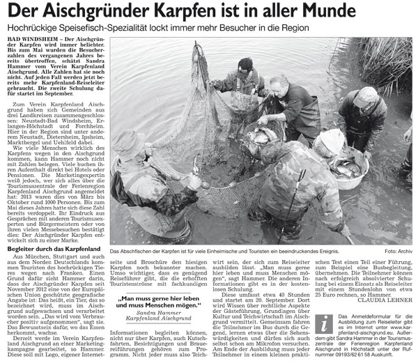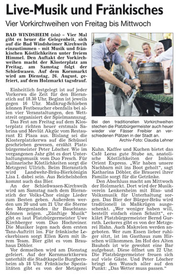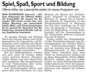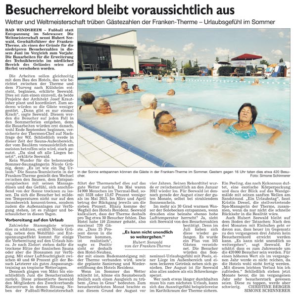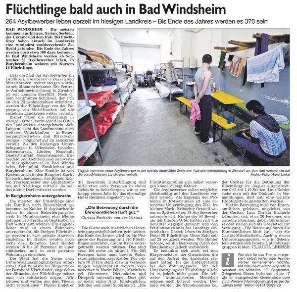 WZ 27. 8. 2014 "Flüchtlinge bald auch in Bad Windsheim","Windsheimer Posaunen beschallen den Brombachsee", "Hufeisen mit Weichselsoße"