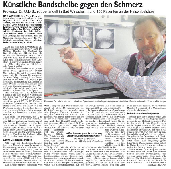 WZ 06. 8. 2014 "Künstliche Bandscheibe gegen den Schmerz"