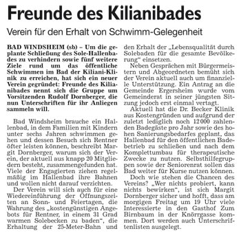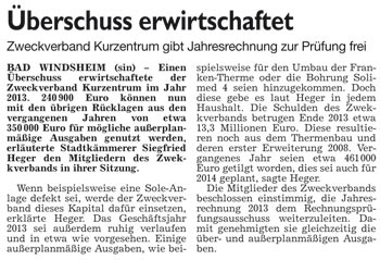 WZ 07. 8. 2014 "Besucherrekord bleibt voraussichtlich aus","Freunde des Kilianibades", "Überschuss erwirtschaftet", "Positives Signal und neue Möglichkeiten"
