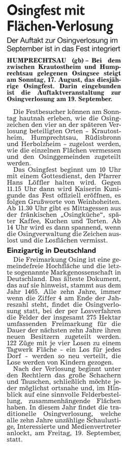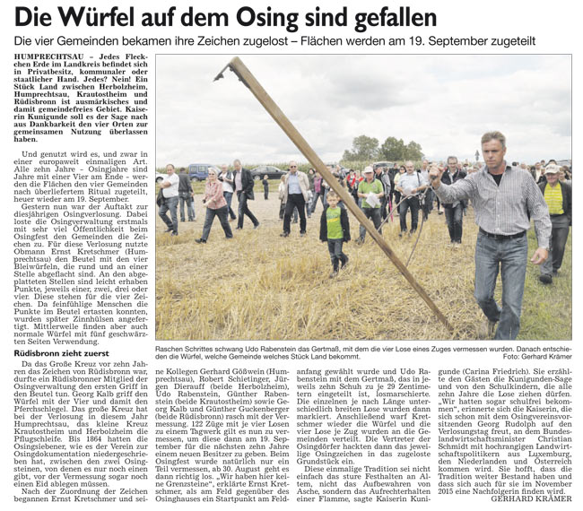 WZ 18. 8. 2014 "Die Würfel auf dem Osing sind gefallen"