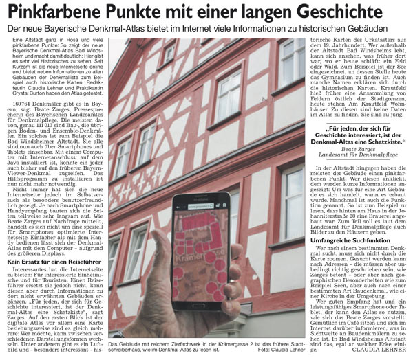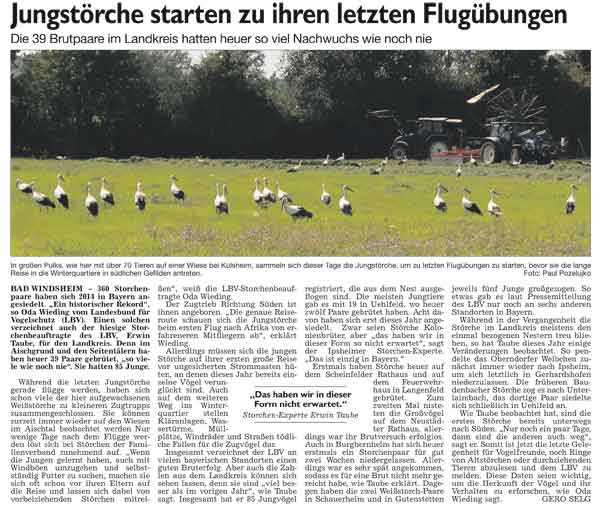 WZ 14. 8. 2014 "Alte Häuser mit der Post verschicken","Jungstörche starten zu ihren letzten Flugübungen", "240.000 Euro für die Altstadt"