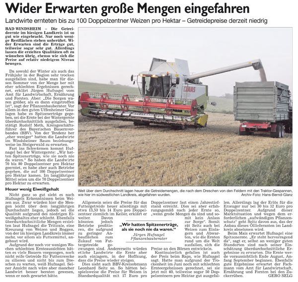 WZ 15. 8. 2014 "Umstellen, Kennenlernen , Einarbeiten","Oberes Tor wird eingerüstet", "Wider Erwarten große Mengen eingefahren", "Der Aischgründer Karpfen ist in aller Munde", "Piloten üben nächtliches Landen"