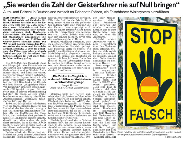 WZ 20. 8. 2014 "Sie werden die Zahl der Geisterfahrer nie auf Null bringen","Nach drei Monaten schon fest im Sattel", "Kulinarisches aus dem Salzsee der Therme"
