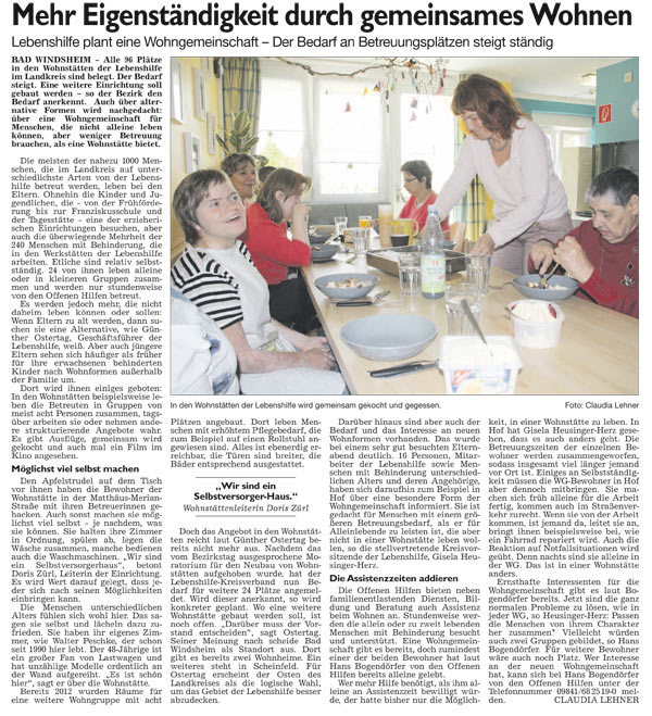 WZ 21. 8. 2014 "Als Filet, gebraten oder geräuchert","Ein künstlerisches Sommererlebnis", "Mehr Eigenständigkeit durch gemeinsames Wohnen", "Gelehrt und begeistert"