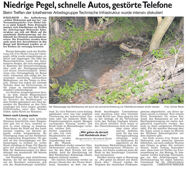 WZ 19. 8. 2014 "Vorhandene Stärken besser vermarkten","Hausmüll, Möbelstücke und Gewehrpatronen", "Live-Musik und Fränkisches", "Pressestelle mit neuem Personal"