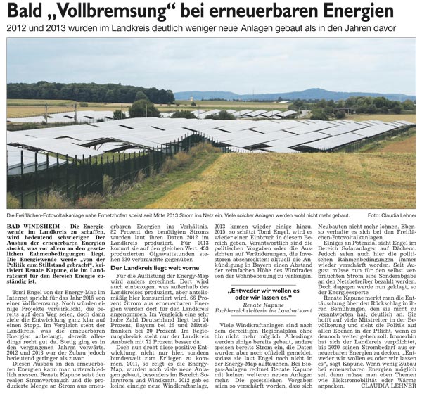 WZ 26. 8. 2014 "Vielzahl an Themen","Bald Vollbremsung bei erneuerbaren Energien", "Zusammenarbeit soll fortgeführt werden"