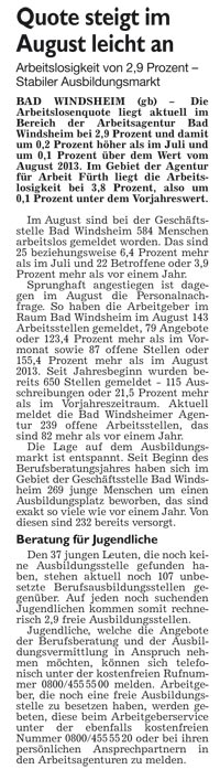 WZ 29. 8. 2014 "Quote steigt im August leicht an","Der Kampf um die Liegen hat ein Ende", "Gemeinsame Kampfansage an den Leerstand"