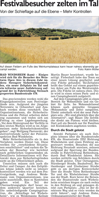 WZ 1. 8. 2016 "Runter vom Sofa, raufs auf Kanapee", "Festivalbesucher zelten im Tal"