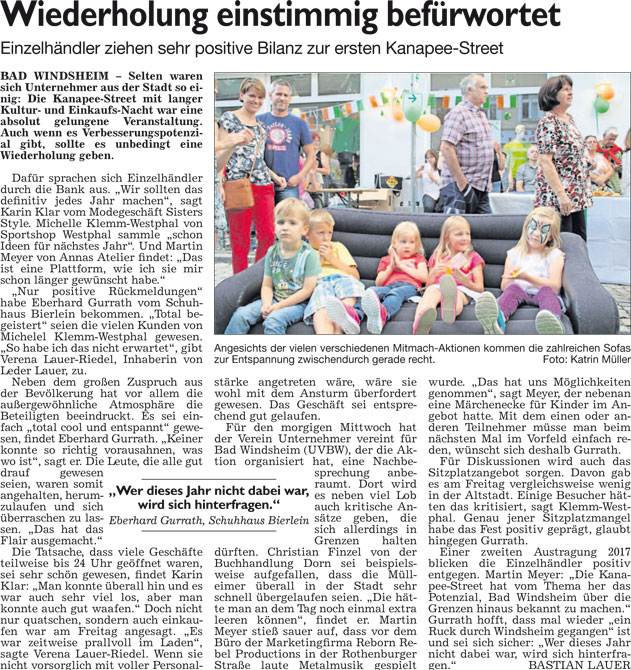 WZ 30. 8. 2016 "Doppelte Unterhaltung für Einheimische und Gäste"
