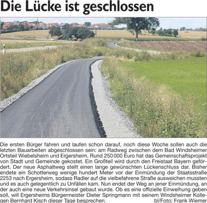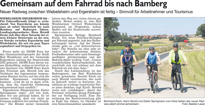 WZ 18. 8. 2016 "Unverfälschte Zutaten zum Stadtjubiläum", "Gemeinsam auf dem Fahrrad bis nach Bamberg"
