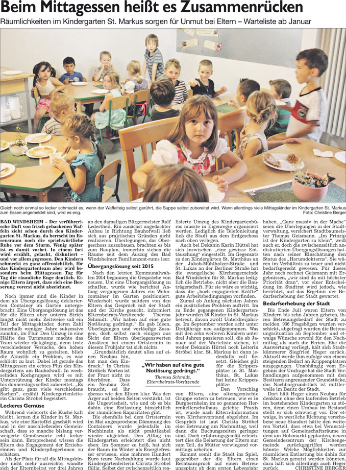 WZ 4. 8. 2016 "Beim Mittagessen heißt es Zusammenrücken"