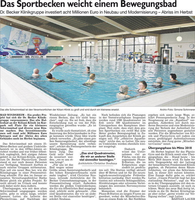 WZ 5. 8. 2016 "Das Sportbecken weicht einem Bewegungsbad"