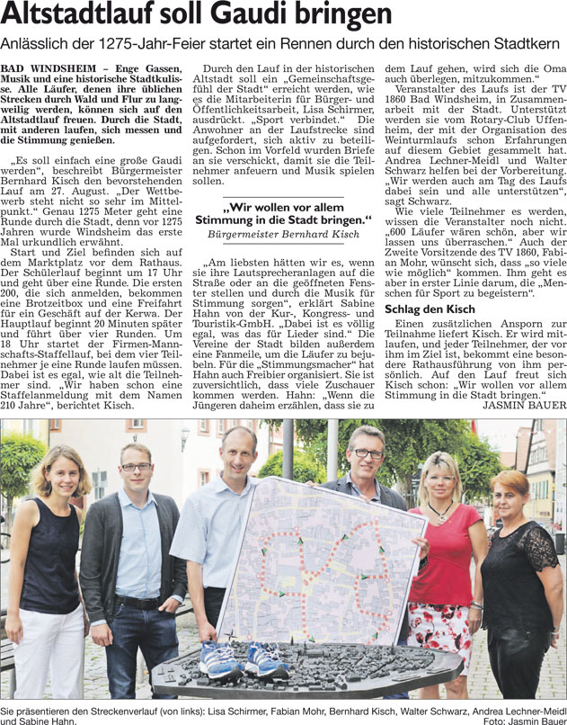 WZ 6./7. 8. 2016 "Altstadtlauf soll Gaudi bringen", "Deine Mutter bringt die Sonne mit"