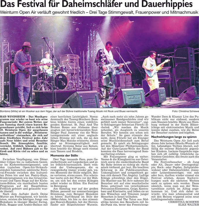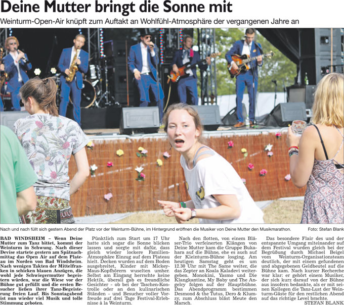 WZ 8. 8. 2016 "Noch fitter für den nächsten Einsatz", "Das Festival für Daheimschläfer und Dauerhippies"