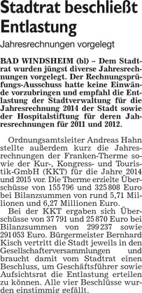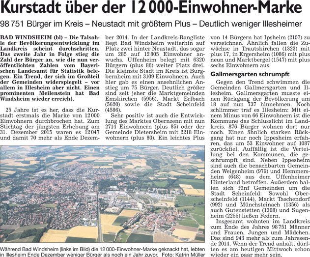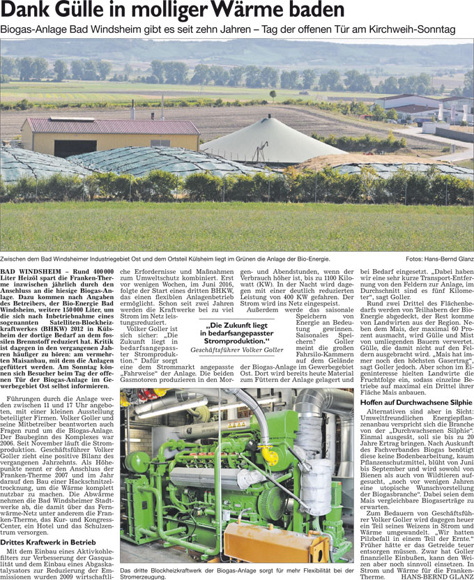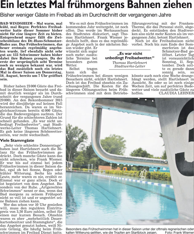 WZ 24. 8. 2016 "Dank Gülle in molliger Wärme baden", "Kurstadt über der 12000-Einwohner-Marke"