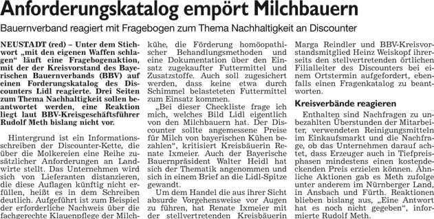 WZ 9. 8. 2016 "Stadtrat beschließt Entlastung", "Anforderungskatalog empört Milchbauern"