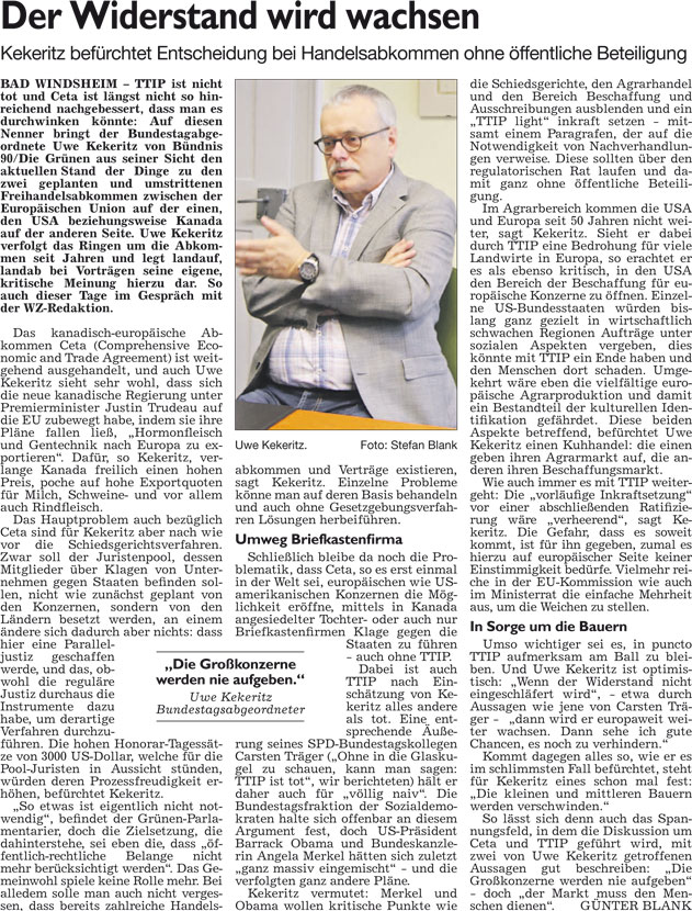 WZ 11. 8. 2016 "Der Widerstand wird wachsen"
