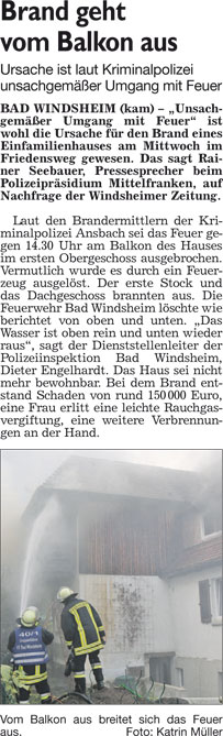 WZ 12. 8. 2016 "Brand geht vom Balkon aus"