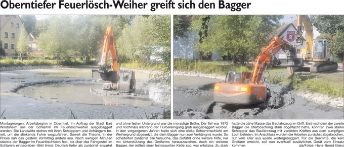 WZ 16. 8. 2016 "Oberntiefer Feuerlösch-Weiher greift sichen den Bagger", "Deutschland ist keine Insel der Glückseligen", "Neue Spielgeräte"