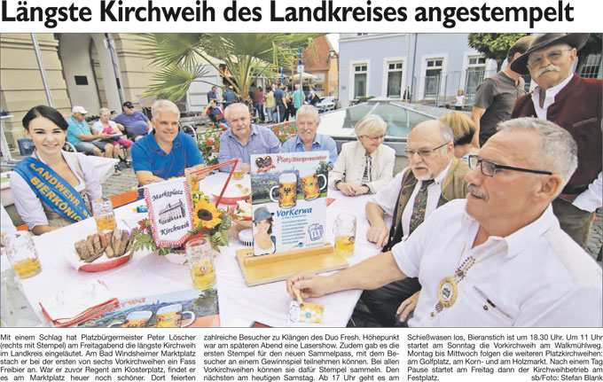 WZ 20./21. 8. 2016 "Längste Kirchweih des Landkreises angestempelt"