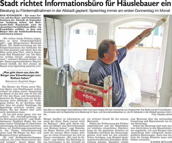 WZ 22. 8. 2016 "Stadt richtet Informationsbüro für Häuslebauer ein"
