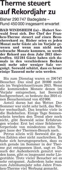 WZ 25. 8. 2016 "Therme steuert auf Rekordjahr zu"