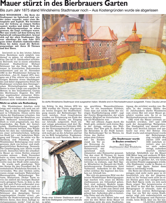 WZ 26. 8. 2016 "Mauer stürzt in des Bierbrauers Garten"