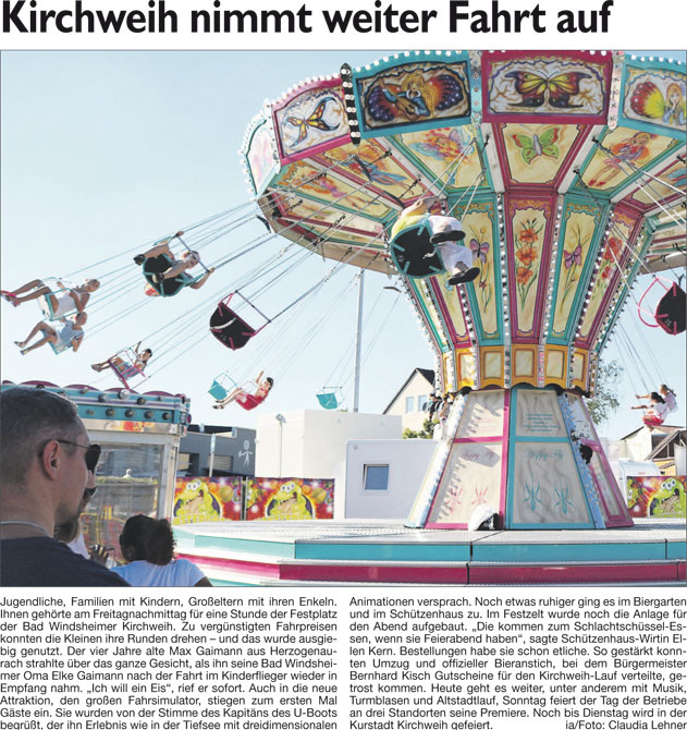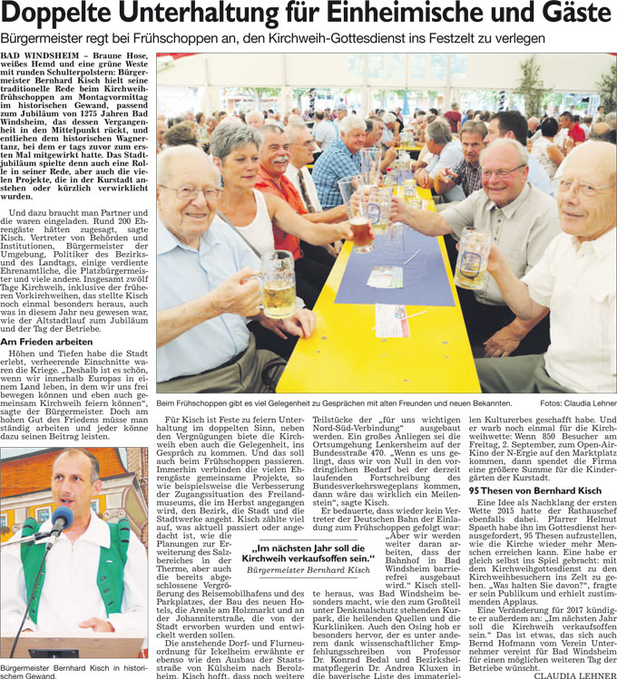 WZ 27./28. 8. 2016 "Kirchweih nimmt weiter Fahrt auf"