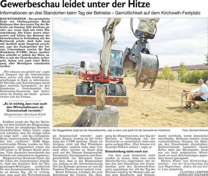 WZ 29. 8. 2016 "Gewerbeschau leidet unter der Hitze"