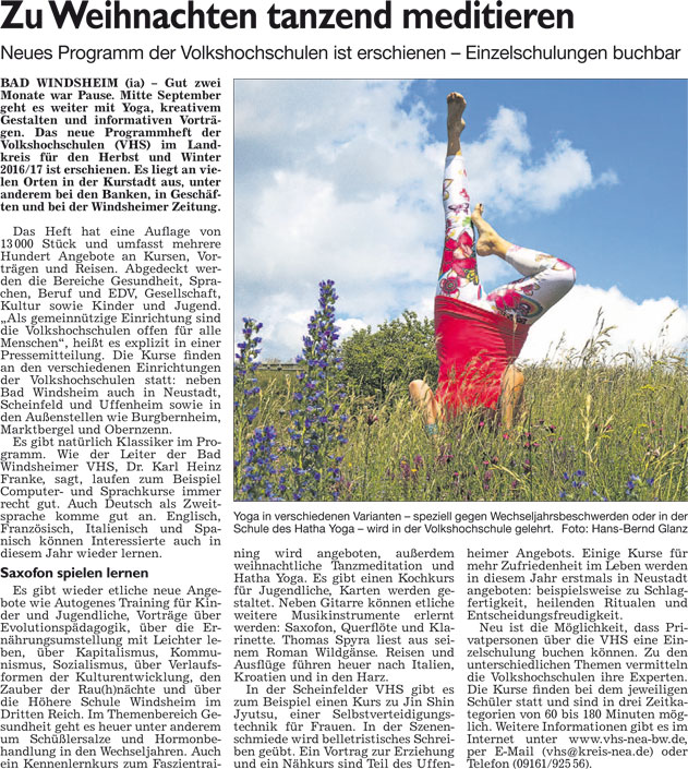 WZ 31. 8. 2016 "Zu Weihnachten tanzend meditieren"