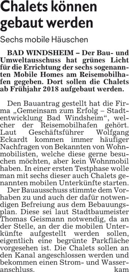 WZ 1. 12. 2017 "Chalets können gebaut werden"