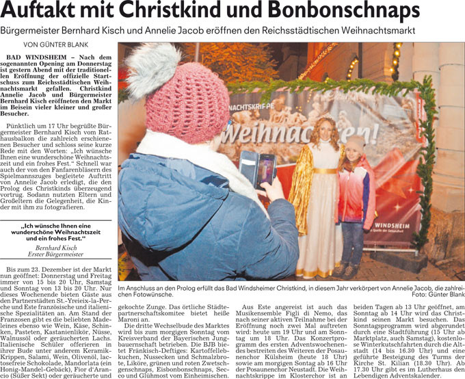 WZ 2./3. 12. 2017 "Auftakt mit Christkind und Bonbonschnaps"