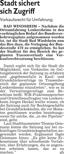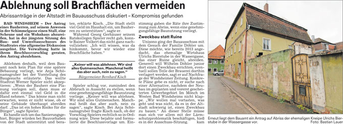 WZ 4. 12. 2017 "Ablehnung soll Brachflächen vermeiden"
