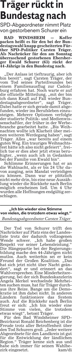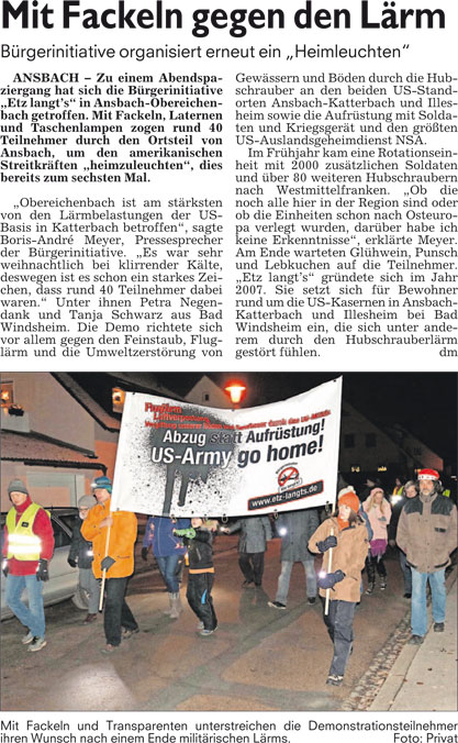 WZ 5. 12. 2017 "Träger rückt in Bundestag nach", "Mit Fackeln gegen den Lärm"