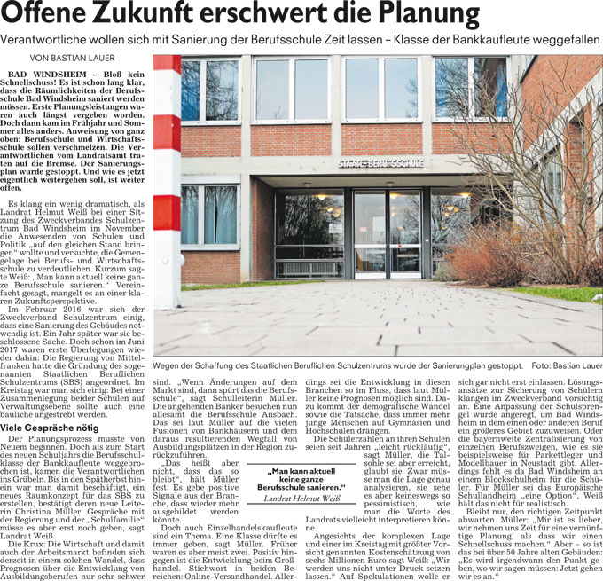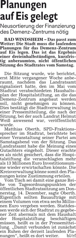 WZ 11. 12. 2017 "Planungen auf Eis gelegt"