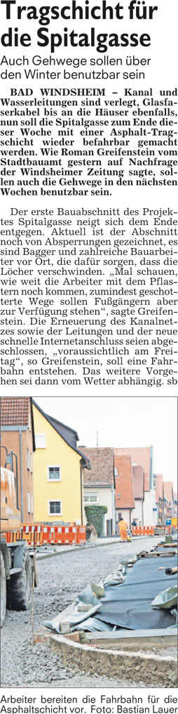 WZ 6. 12. 2017 "Offene Zukunft erschwert die Planung", "Tragschicht für die Spitalgasse"