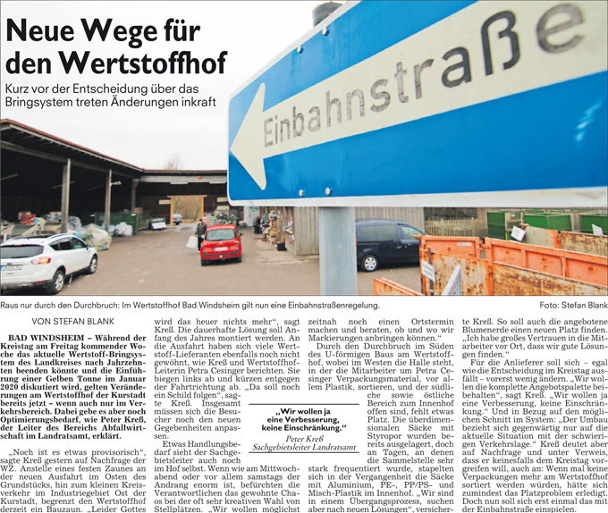 WZ 7. 12. 2017 "Neue Wege für den Wertstoffhof"