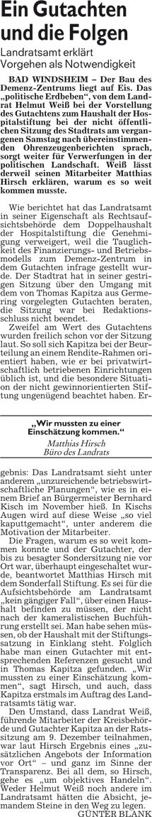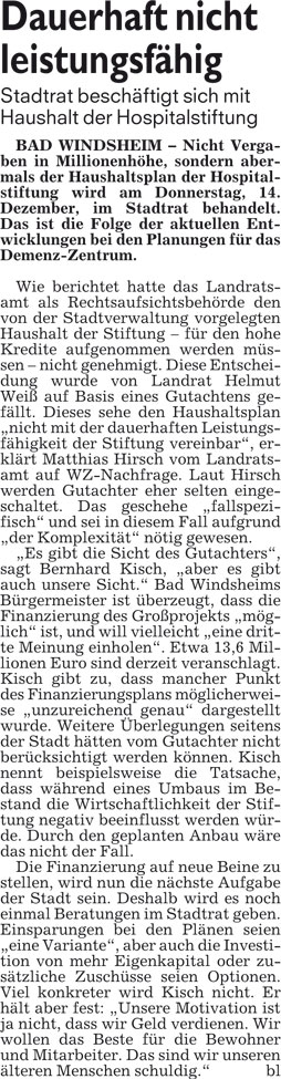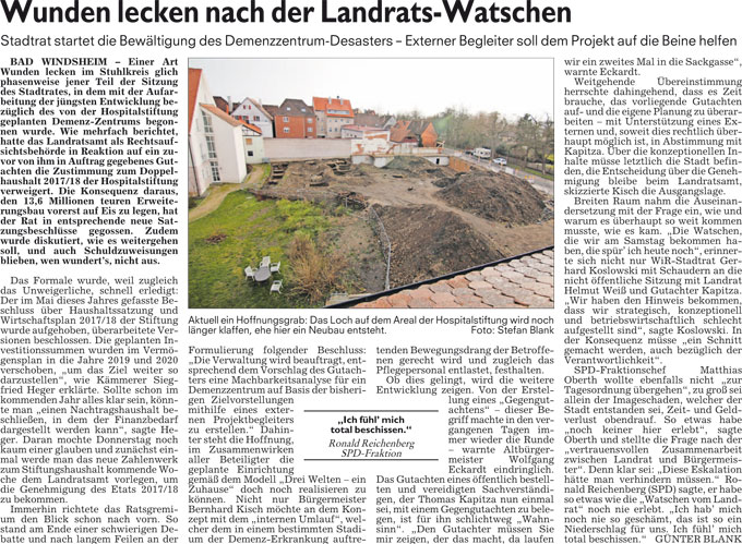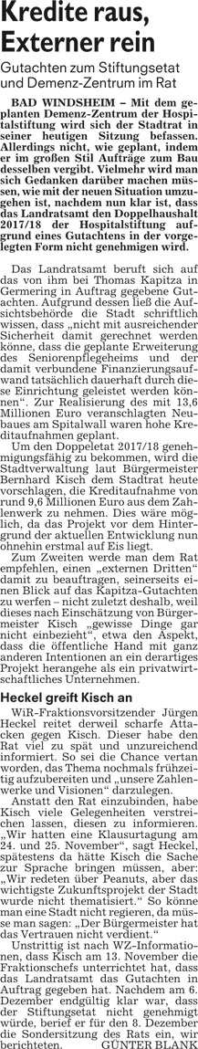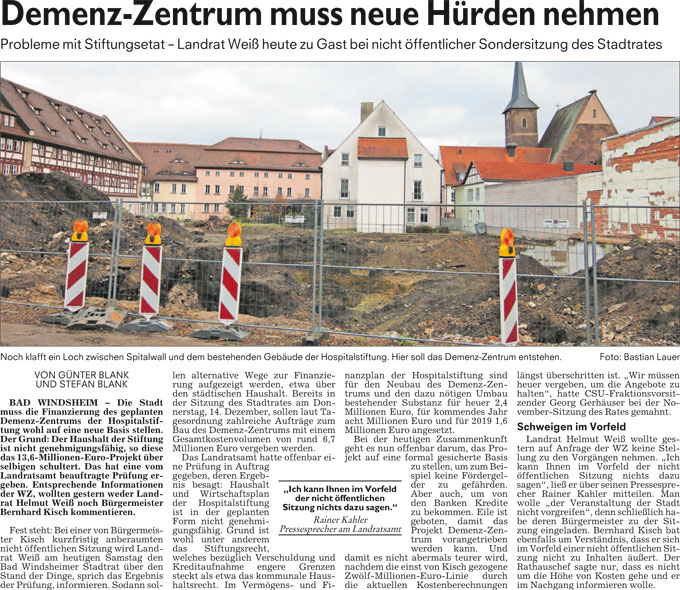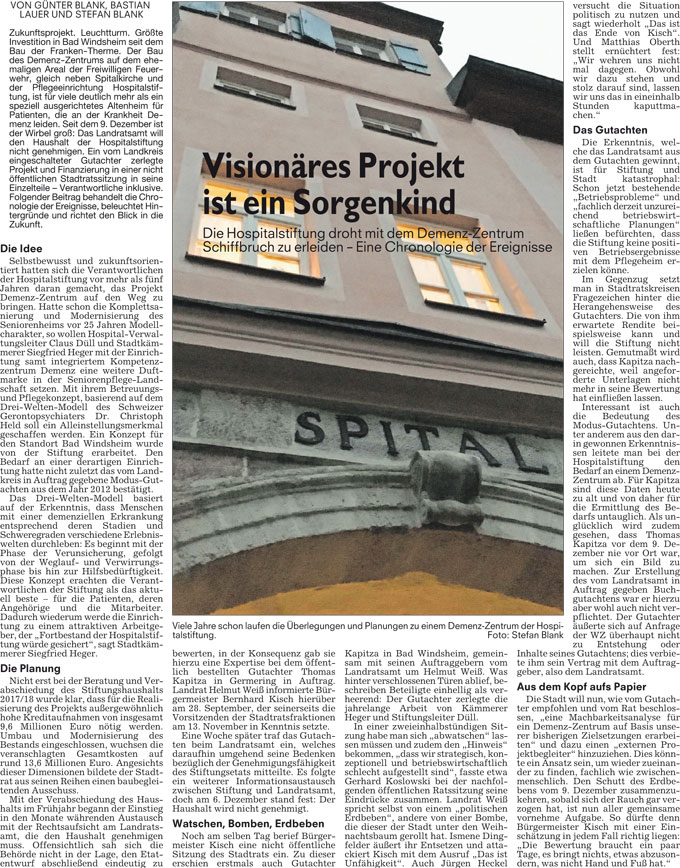 WZ 9./10. 12. 2017 "Demenz-Zentrum muss neue Hürden nehmen", "Seit 1992 fehlt Hubschrauber-Waschanlage Genehmigung"