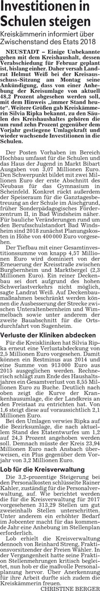 WZ 16./17. 12. 2017 "Wunden lecken nach der Landrats-Watschen", "Überraschend klares Votum"