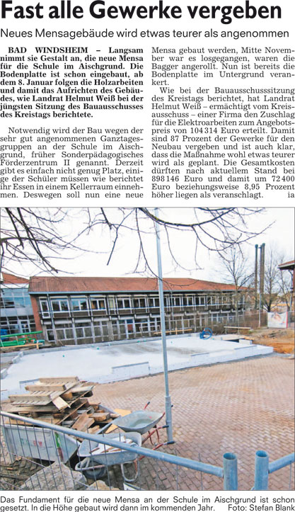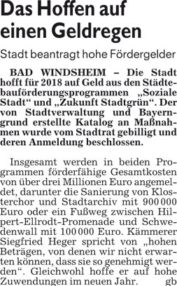 WZ 28. 12. 2017 "Stadt sichert sich Zugriff", "Fast alle Gewerke vergeben"