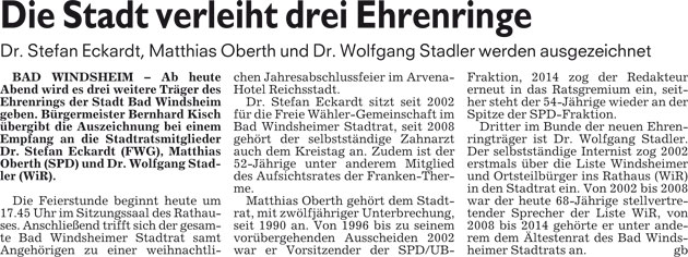 WZ 21. 12. 2017 "Die Stadt verleiht drei Ehrenringe"