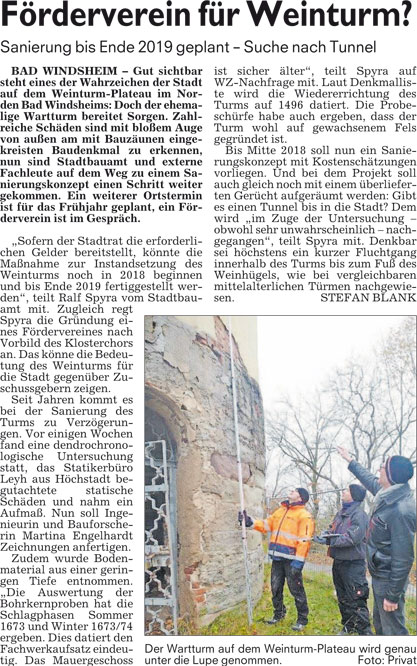 WZ 29. 12. 2017 "Förderverein für Weinturm?"