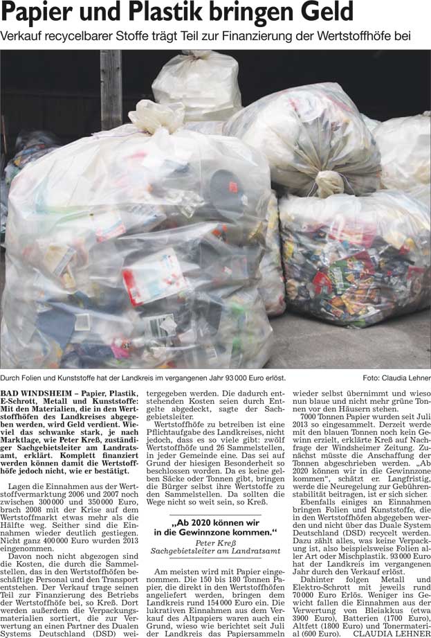 WZ 1. 12. 2014 "Neue Satzung für Ortsbeirat steht","Papier und Plastik bringen Geld"