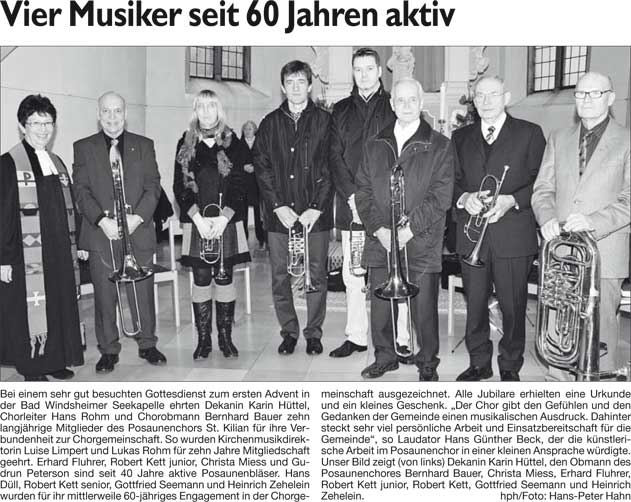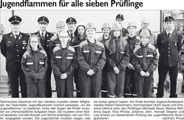 WZ 2. 12. 2014 "Außen als Komplettpaket, innen ganz individuell", "Vier Musiker seit 60 Jahren aktiv", "Jugendflammen für alle sieben Prüflinge"