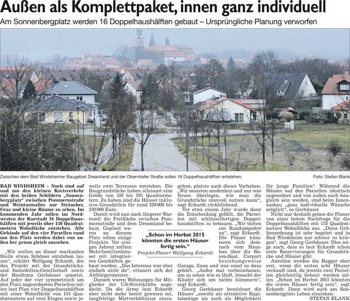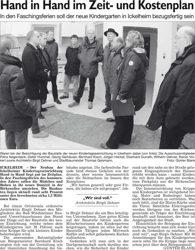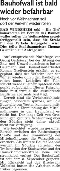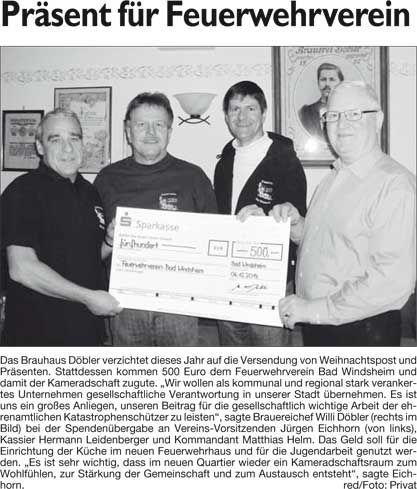 WZ 11. 12. 2014 "Präsent für Feuerwehrverein", "Hand in Hand im Zeit- und Kostenplan", "Von Kettensägen bis Kinderkarussell", "Gut für Rollstuhlfahrer, schlecht für Blinde