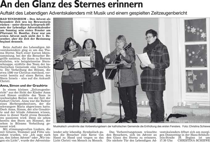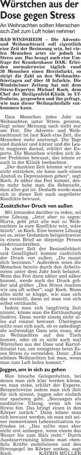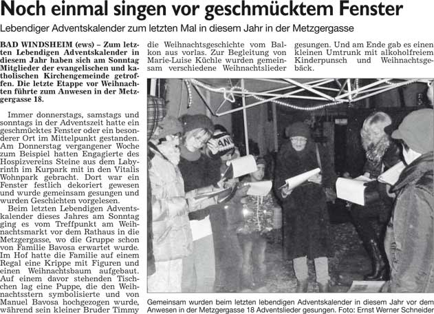 WZ 23. 12. 2014 "Noch einmal singen vor geschmücktem Fenster", "Würstchen aus der Dose gegen Stress"